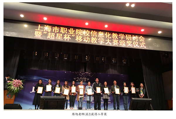 4月18日下午,上海市职业院校信息化教学研讨会暨第一届“超星杯”移动教学颁奖仪式在上海信息技术学校举行,来自全国近300名专家领导、获奖选手、相关院校的老师参加了此次盛会。我校基础部高锋老师获得比赛一等奖,空港管理系陈旭老师获得比赛二等奖,应邀出席了此次大会。