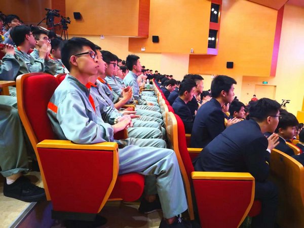 全国五一劳动奖章获得者倪泽军宣讲的题目是《践行“当代民航精神” 成就机务职业梦想》。这位飞机结构和复合材料高级工程师讲述了自己和团队从最初的航线保障到深度大修再到重大结构修理和加改装工程,最终成功实现国内首次由中方技术人员独立完成757客机改货机实施项目的故事,传达“个人的努力是加法,团队的努力是乘法”的理念。这位有情怀的理工男还结合自己的成长经历寄语同学“人生就像一只储蓄罐,你投入的每一分努力,都会在未来的某一天回馈于你”,“书虽然不能直接帮你解决问题,却能给你一个更好的角度”。