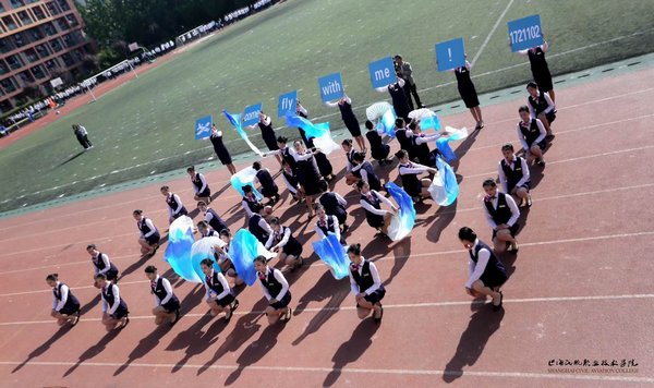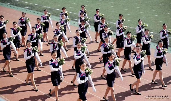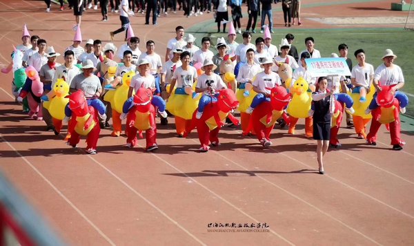 运动会开幕式在八点开始,杨征副院长主持,学院领导班子成员和相关部门负责人出席开幕式。迎着朝阳,国旗队、校旗队、鲜花队、运功会会标、红旗队依次入场,他们以矫健有力的步伐和昂扬向上的风貌通过主席台接受检阅,在蓝天白云的映衬下,迎风招展的烈烈红旗和第五届运动会的会标分外醒目。裁判员方队和运动员方队随后入场,他们以饱满的热情踏出青春的正步,充分展现民航学子积极向上的良好风貌。在尽情挥洒青春亮丽风采的同时,一些班级还大胆展现年轻的创意活力,精彩纷呈的入场式表演成为运动会上的一个个亮点。