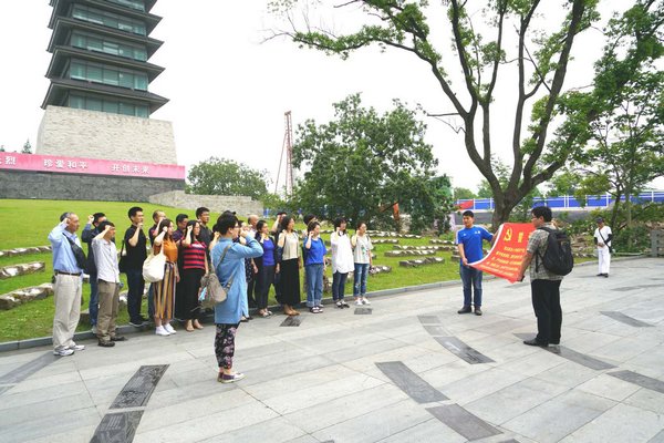 欢声笑语中,支部成员到达了第一站——淞沪抗战纪念馆。在入馆参观前,全体党员庄严地举起右手,重温入党誓词,表达了心中对党的忠诚与热爱,坚定了为党奋斗终生的信念。馆内陈列着大量的文物和史料,辅以声、光、电等互动手段,真实客观地展示了“八一三”淞沪会战的历史风貌,激励华夏子孙“铭记历史、缅怀先烈、珍视和平、警示未来”,为实现中华民族伟大复兴的中国梦而奋斗。大家认真听着讲解,思绪万千,接受了精神洗礼,坚定了党性觉悟。