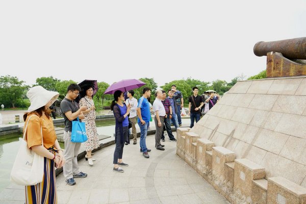 紧接着党支部全体成员来到了第二站——吴淞口炮台湾国家湿地公园。该公园是爱国主义教育的示范基地,大家纷纷在广场内的几门古炮前合影留念,感受历史兴衰。