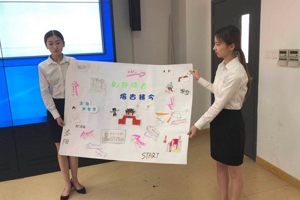 在本次比赛中,各组参赛选手帮助旅游者在指定区域内进行旅游线路方案策划,通过多元方式向评委老师和同学们展示方案设计成果,最后针对评委老师的提问进行答辩。
