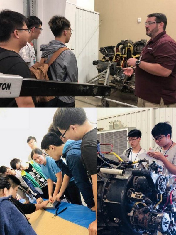 本次学习活动过程中,莱托诺大学为学生们安排了ESL语言课程和机务理论及实践课程。负责ESL语言课程的Steve 老师上课认真细致生动,一直用不同的游戏方法激发同学们开口表达的欲望,课堂气氛非常活跃。他让同学们进一步了解了美国的本土语言文化,提高了英语听力和口语表达能力。负责FAA专业课程的Sarah老师曾经去过日本、韩国等国家进行过教学实践,针对国际学生的班级课程非常有教学经验。她上课风趣幽默,讲解通俗易懂,通过有趣的教学方法让同学们记住了全英文的飞机和发动机部件图。实操课上,Sarah老师与学生助教Emily还对同学们照顾有加,在拉伸测量实验、修补与打保险丝的模拟试验中,放慢语速向同学们讲解,一次次地在同学们关键的漏洞处,亲手示范给他们看。学习间隙,同学们还参观了莱托诺大学航空实训中心和实验室,有些英语口语较好的同学还大胆和相关教授互动,了解德州这里的民航发展与私人飞机普及的情况。