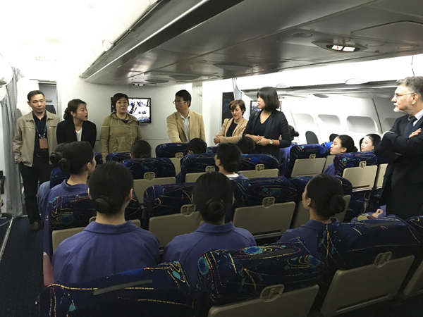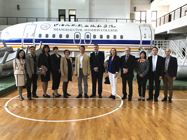 会谈后,杨征副院长等陪同代表团一行参观了航空服务开放实训中心、机务工程训练中心,代表团对我校的宜人环境和先进的实习实训条件表示肯定与赞赏。