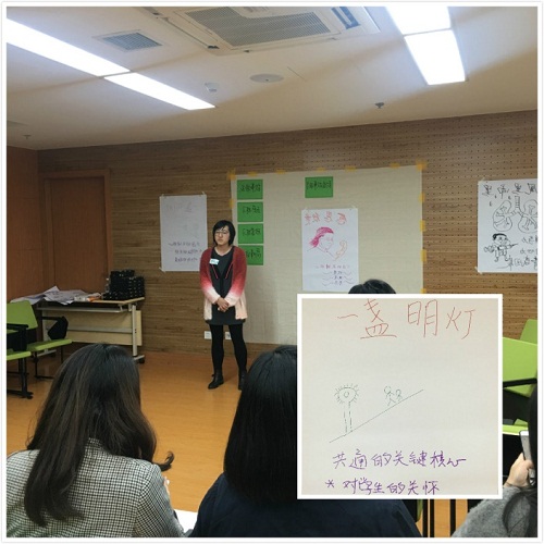 虽是短短的两个半小时,小伙伴们在真实的情绪流动中,增进彼此的理解、支持,从“心”的视角里看出去,一切正面与负面的事件都有它本有的正向资源,这也是更多元地看待和思考辅导员工作的经历与未来的视角。在最后的回顾里,大家纷纷表示收获颇丰,手中捧着老师示范的团队建设方法,大家迫切地想应用于班级建设;心里揣着感动的故事和“宝藏”,期待下次再见。