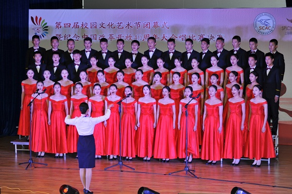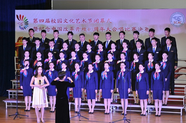 空港管理系的《东方之珠》余音绕梁,让在场师生感慨中国改革开放四十年的辉煌变迁。