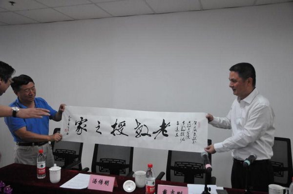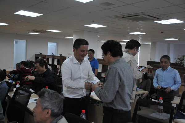 戴志刚书记讲话完毕,他来到与会的老教授、老专家身边,一一和他们握手慰问,将中国老教授协会颁发的《会员证》亲自交到老教授、老专家手中,并与大家合影留念。