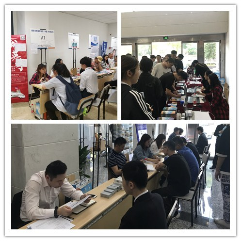 2019年5月31日,学院在徐汇校区行政楼一楼举办了“87365最快检测中心2019年春季校园招聘会”,此次招聘会由学院学生工作处主办、就业指导中心承办,共吸引了近130家单位报名,106家单位参展,共有230多位来自各企事业单位的招聘专员、人事经理和部门领导莅临现场,约近300位来自2019届、2020届的各系学生参加了本次招聘。