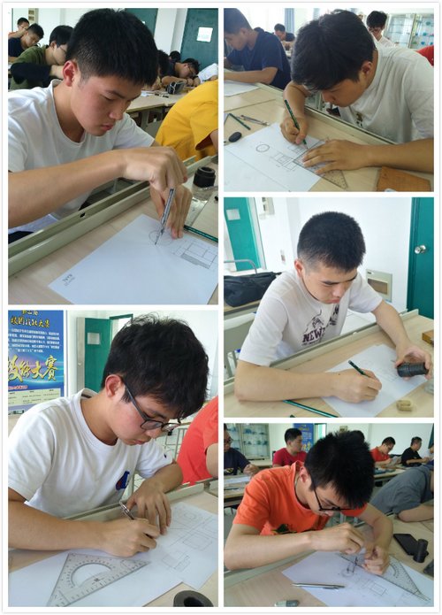 本次竞赛主要为了考察飞行器制造技术专业学生在理论学习和实训过程中所学基本知识的实际应用,对同学们来说是一次难得的挑战。同学们本着严谨踏实的态度积极报名参加竞赛,赛前的培训及准备让他们个个自信满满,不仅赛出了技能水平,更赛出了学生的专业素养以及积极追求进步的豪情。“典型机械零件测绘”赛场,学生们个个仔细观察、精心测量,稿纸上画完初稿后在答题纸上准确绘制;“钳工加工工艺”赛场,学生们认真考虑工艺要求,规范使用工、量具,正确操作,台面整洁。比赛过程中,系主任陆周老师及部分教研室老师到场进行了观摩指导。