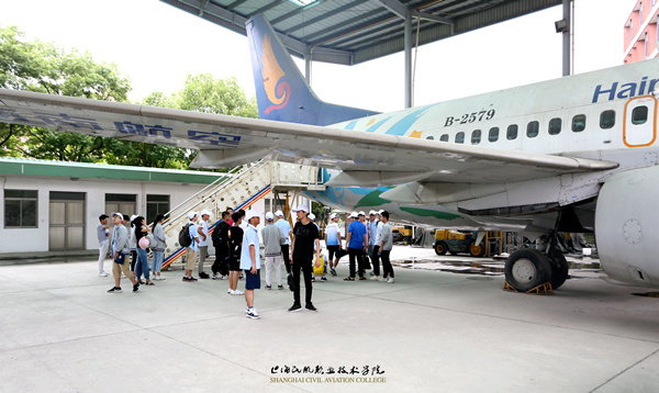 随后同学们分组参观了学院实训设备,包括航空乘务系的A330和B738静态舱、简易模拟舱、化妆教室、动态舱、舱门训练器、灭火模拟舱、水上训练场、力量房等实训设施设备,航空维修系的波音737-300飞机、赛斯纳152飞机、A320维修模拟器、PW4462发动机、飞机发动机拆装实训室、发动机解剖模型等实训设施设备。近距离看到飞机发动机、模拟仓等实训设备,大家都兴奋不已,讨论热烈,进一步加深了民航行业的职业认知,极大地激发了同学们报考我院的热情。