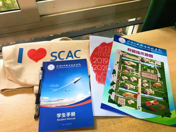 学院为新生准备的大礼包(帆布袋、水笔、学生手册、校园地图)