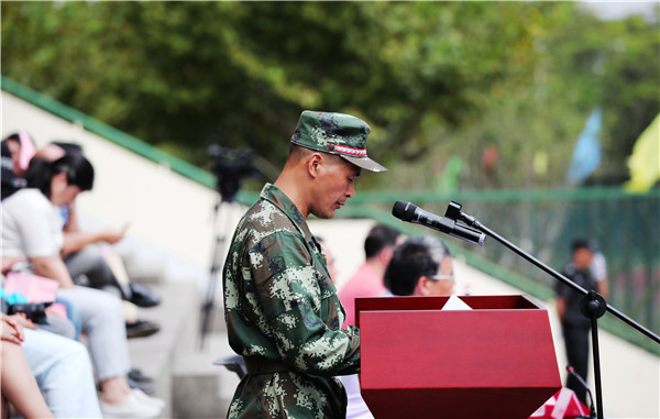 军训总教官王子明在致辞中感谢学院的支持和关心,感谢所有教官的努力付出,感谢辅导员老师的帮助,感谢所有学生的用心和坚持。