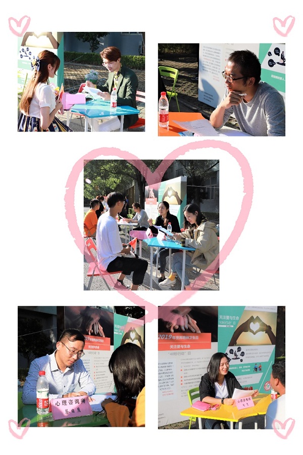 10月10日是世界精神卫生日,今年精神卫生日主题为预防自杀。今年10月也是新中国成立70周年的大庆,以此为契机,学生工作处心理辅导中心将“大爱”(热爱祖国)与“小爱”(热爱生命)结合起来,于10月10日下午15:30,在浦东和徐汇两个校区同步举行“表白祖国,收获健康心理”精神卫生日主题活动。