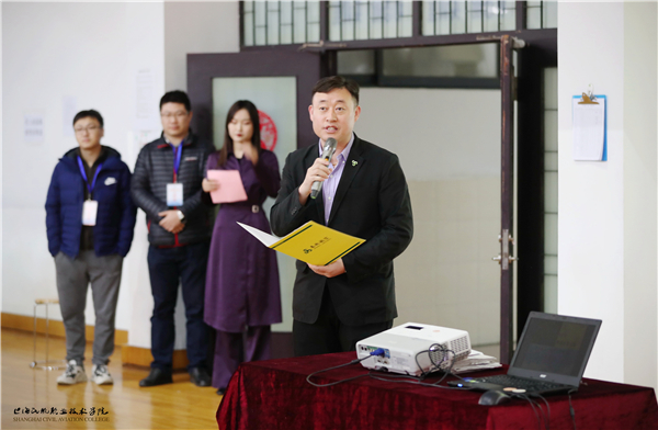 最后,杨征副院长代表学院致欢迎词。他感谢春秋航空对比赛的大力赞助,希望双方进一步加强校企合作,也希望比赛能检验学生所学知识和技能,并有效提升学生和教师的职业水平。对于春秋航空的社会影响力,杨院长表示高度赞同。学院正在和春秋航空进一步加深校企合作,推进相关项目。最后,他对所有指导老师的辛勤付出表示感谢,也希望所有的选手能够发挥出自己的水平,不断培养大国工匠意识,为民航强国建设做出自己的贡献。