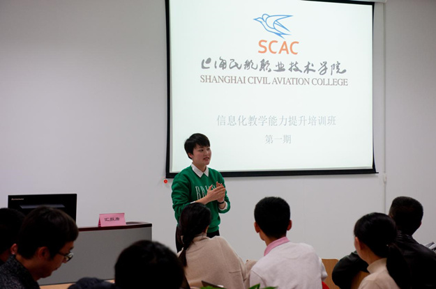 在培训成果交流与分享过程中,“开飞机的舒克”小队发言代表航空维修系丁一老师展示了《快乐航班》和《SCAC寒假生活须知》两份轻松活泼的作品;“DSHCL”小队发言代表学生工作处陈奕帆老师用微视频方式向大家展示了规则意识对学生成长的重要性;“生命”战队发言代表航空运输系曲倩倩老师展示了《民航器官运输——架起生命的绿色通道》的微课程;“圆梦蓝天”小队发言代表学生工作处张骐老师用微视频方式向大家展示了一名民航学子入学就读到进入工作岗位的学习生活经历;“雄鹰”小队发言代表航空维修系周恒宇老师向大家展示了两个作品:《三分钟让你学会领航尺的使用》和《三分钟带你认识通用航空》。五个小组用生动活泼的视频形式,或讲述了专业知识,或传授了为人处世的道理,精彩纷呈。