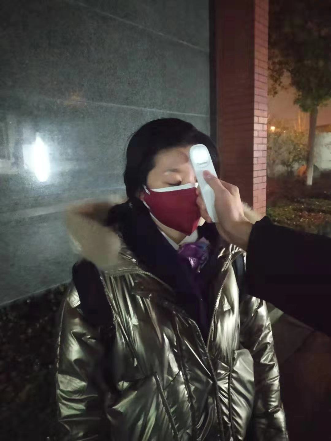1月27日夜里十一点五十分左右,小高拖着疲惫的身体回到已经实行封闭式管理的校园,却在校门口入校测体温时被测出正在发烧。在新型冠状病毒感染的肺炎疫情不断蔓延的严峻形势下,学院对任何疑似症状、病例都严防死守,并已经将相关工作要求通报驻校的食堂、物业公司等第三方单位。上房物业公司立即向后勤保卫处报告了这一信息。后保处运行保障办公室主任王幸得知消息后,第一时间向学院新型冠状病毒感染的肺炎疫情防控工作领导小组办公室主任、学院副院长孙暄汇报,同时一直了解小高同学的具体情况。得到消息后,后保处副处长张玮森深夜来到了学院处理相关事宜。