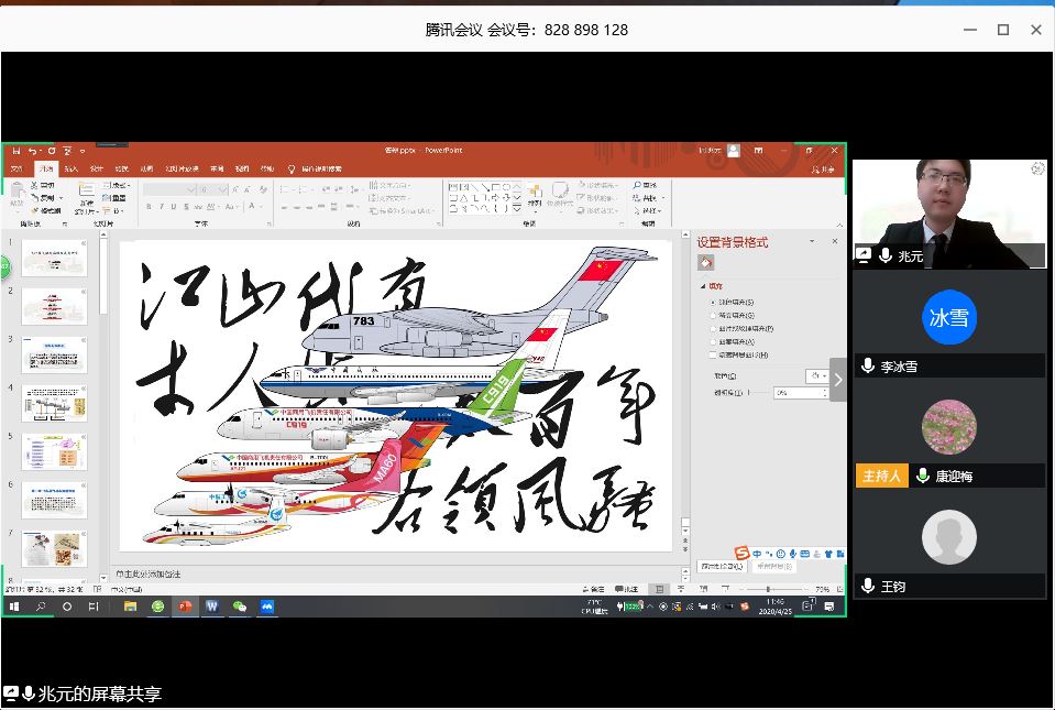 4月25日,航空制造系顺利完成17级线上论文答辩工作。因部分答辩学生在商飞实习,生产任务重时间紧,请假困难。经答辩组老师研究,从服务学生和企业的角度,将答辩时间安排在周六早上8:30--11:30。答辩分两个小组进行,每组负责9-10位学生,为保障答辩过程的顺利和稳定,两组老师分别于本周四晚进行了答辩平台的测试,邀请学生进平台测试视频和屏幕分享功能是否正常。答辩老师提前一天审阅了学生答辩材料,整个答辩过程顺利有序,达到了线上答辩不降低要求的预先目标。例如,1751101班周兆元同学结合商飞岗位实习工作和自己的兴趣爱好,在老师的精心指导下,对飞行器气动布局的发展作了较为全面的梳理和分析。答辩时准备充分,正装出席,在答辩中精神饱满、自信,应答准确,分析到位,给答辩老师留下深刻印象,表现出较为扎实的航空知识基础和为民机奋斗的精神。