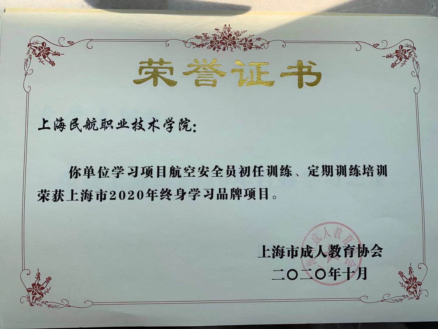日前,我院航空安全员初任训练、定期训练培训荣获上海市2020年“终身学习品牌项目”称号。该奖项由上海市成人教育协会面向全市组织专家综合评定,对参加学习人数、教师和管理服务团队人员、活动组织形式与场所、教育定位和可持续发展规划等都有明确的条件要求。