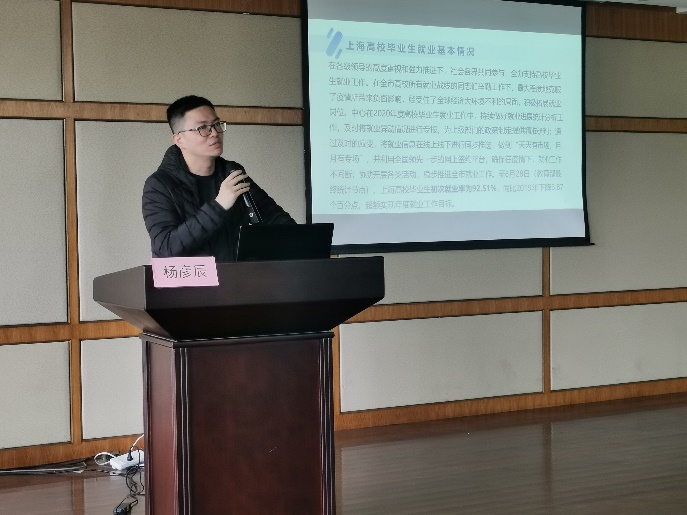 开班第一课,学院学生工作处邀请了上海市学生事务中心就业服务部副部长杨彦辰,就目前本市就业指导政策及就业形势做了专题讲座。杨彦辰老师为我院辅导员深入解读了上海高校毕业生就业基本情况和就业相关政策,同时传达了本市就业统计工作的最新文件精神和相关指标变化,并对上海高校毕业生就业统计工作提出了相关的要求。