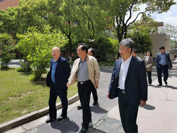 胡亚明院长陪同刘杰(左一)一行参观校园