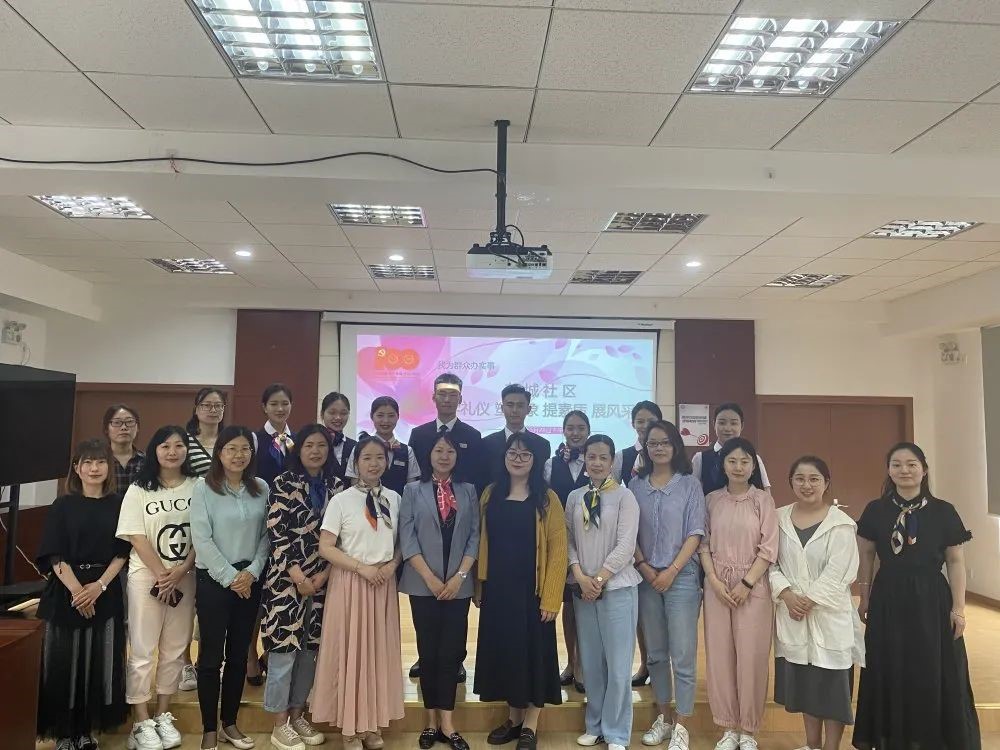 本次活动邀请了惠南镇东城社区工作人员、辖区妇女代表、党建联建单位职工代表、村居团员青年等。社区党委书记在致辞中表示,迎接建党100周年的系列活动中,“我为群众办实事”是一项主要工作,可以丰富辖区内各行业职工精神文化需求,结合文明创建工作,着力提升职工形象气质和文明礼仪素养,更好地展示东城风采。她对航空乘务系师生表示了热烈欢迎。