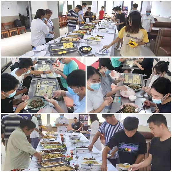 国庆假期,后勤保障第一线的食堂服务人员,依旧坚守岗位、随时待命。此次活动中,师生们满足的笑容就是对广大餐饮工作人员辛苦付出的回报。为了积极推进后勤服务融入学校劳动育人体系,丰富学生第二课堂教育,促进学生德智体美劳全面发展。后保处在美食品鉴活动中,也增加了劳动体验环节,让学生们体会到了劳动带来的乐趣,传授了学生们生活中的小技能。国庆活动现场气氛热烈,众多美食让乘兴而来的师生们一饱口福,也让留校的学生感受到了学院大家庭的温暖。餐饮公司还在活动期间为广大师生们赠送了水果、饮料等小礼品,让同学们开开心心地度过了一个丰富的国庆节。