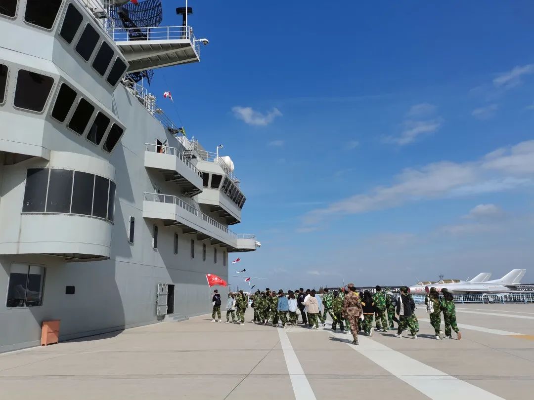 接着到达国家安全馆观看了国家安全教育片,国家安全头等大事,同学们身临其境的观看着,当镜头中党徽出现的那一刻,大家坚定的眼神,肃然起敬的身姿,无一不体现了安全意识已扎根在同学们的心中。最后同学们走上航空母舰甲板,营旗随风飘扬,面向矗立着的退役战机不由自主的敬起了军礼。