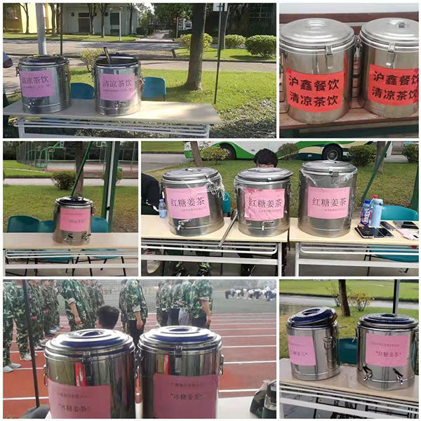 今年的军训天气情况复杂,天气时而晴空万里、持续高温;时而乌云密布,寒风骤雨……给后勤餐饮工作提出了巨大的挑战。后勤保卫处坚持“以人为本”,紧密关注军训动态,做到以学生的饮食需求为工作导向。在下雨天气温较低时,为学生、教官熬制热姜汤、热糖水,御寒增能;在高温天气里,提供菊花茶、绿豆汤、大麦茶等“清凉茶饮”为学生祛暑降温。在运动强度较大时,增加鸡腿、增加饭菜供应量;在军训作息安排有变时,如遇到新生核酸检测和接种疫苗、外出拉练安排等情况,食堂积极调整供餐时间,灵活应对。无论是早上6点的早餐还是下午2点的临时午餐,只要有需要,餐饮工作者随时做好准备,保障学生们和医生们的餐饮供给。天南海北的学生们汇聚一起,口味各有所需,在学生提出饮食意见时,学院高度重视、餐饮公司们立即改进。面对高强度的工作量,每一位饮食员工也不忘微笑服务,他们总说军训学生更加不易,努力做好岗位工作,让各个环节尽善尽美,为军训学生提供了强有力的饮食服务保障。