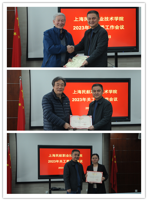 会议宣读了2021年度在学院关工委工作中作出突出贡献的集体和个人名单,其中:高伯群同志荣获“2021年全国教育系统关心下一代工作先进工作者”称号,学院关工委荣获2021年“读懂中国”活动优秀组织奖,学院关工委航空维修系分会荣获2021年上海市教育系统基层“五好关工委组织”称号。戴志刚书记向以上先进个人和优秀集体颁发了荣誉证书,现场响起了热烈的掌声。