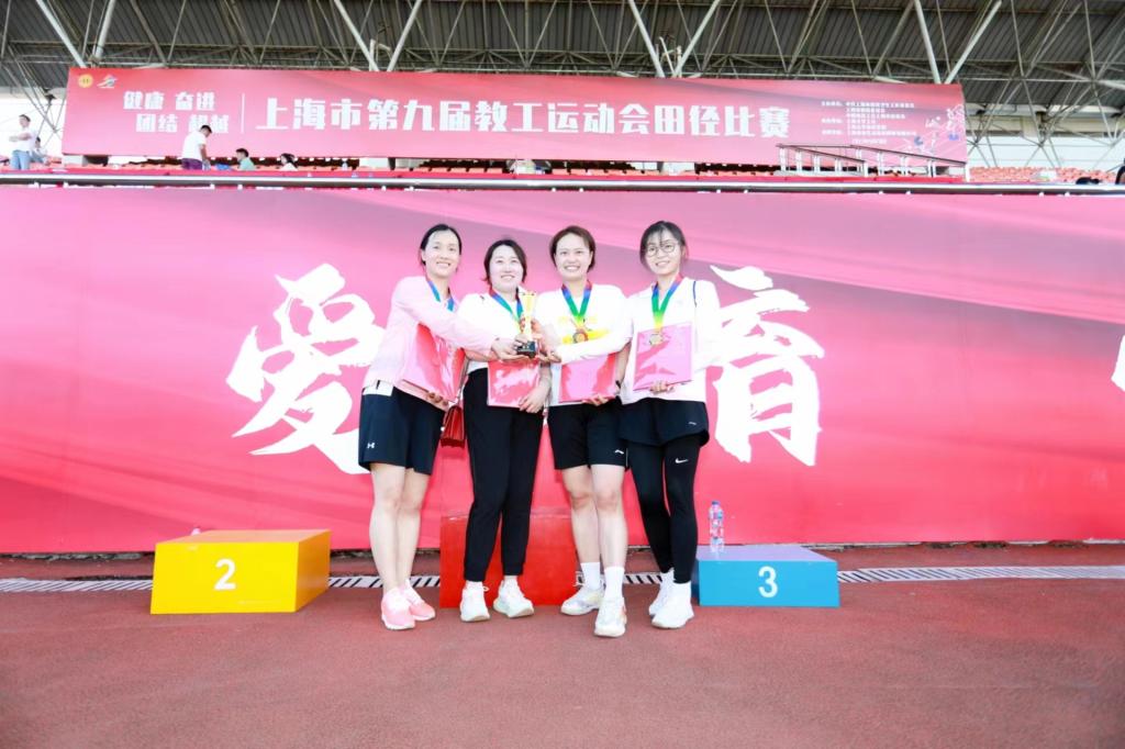 5月28日,上海市第九届教工运动会田径比赛在上海大学宝山校区举行。来自各高校、区(含中职联)、两委机关及直属单位共64支代表队1300余名运动员齐聚上大。我院与来自本市大专院校的17支队伍被分在高校B组同场竞技,在全体队员的顽强拼搏、团结合作下,最终获得3个第一名,8个第二名,7个第三名,28人次获得前八名,团体总分第三名的好成绩。