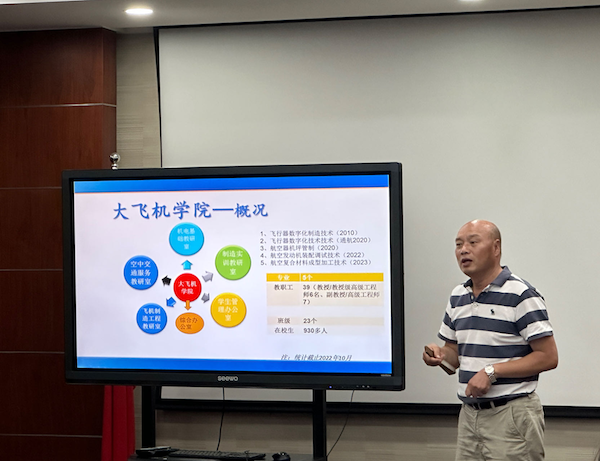 随后,陆周介绍了大飞机学院发展现状、师资力量、专业设置、招生和就业情况,重点对学院的专业特色、人才优势与高博航空的人才需求匹配度进行了分析,指出双方未来校企合作上具备扎实的专业基础和良好的合作前景。