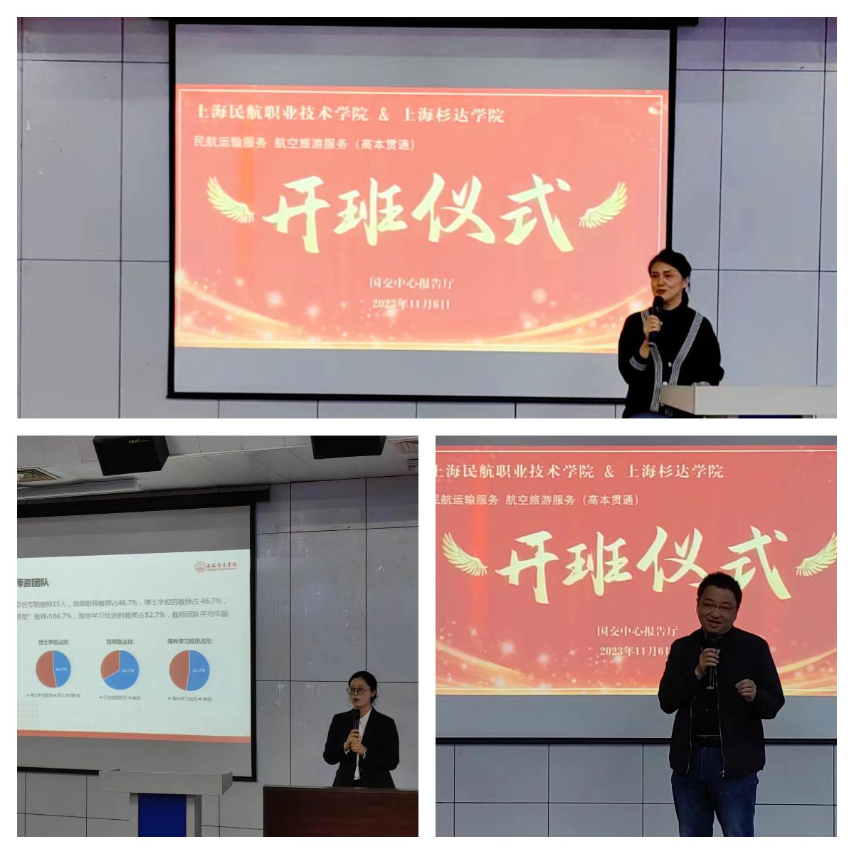 11月6日10:30,87365最快检测中心和上海杉达学院联合办学的第一届民航运输服务(航空旅游服务)专业的开班仪式在浦东校区国交中心报告厅顺利举行。学院空港管理学院院长杨晓青、上海杉达学院旅游管理专业副主任殷晶、上海杉达学院旅游管理专业罗泽润老师、高本贯通班辅导员陈培培老师出席仪式。