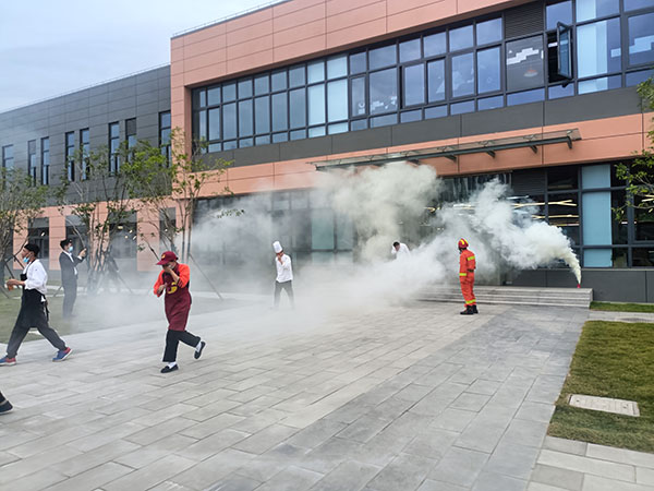 随后,学院后保处黄福磊用通俗易懂的语言阐释了火灾的特点和危险性,向食堂、物业、保安等一线工作人员重点讲解了日常防火常识以及发生火灾时逃生技能,现场示范灭火毯灭火和灭火器灭火的正确使用方法。后保处并组织开展了灭火实操演练,帮助食堂、物业、保安等一线工作人员从实践中真正掌握灭火器等正确的使用方法。