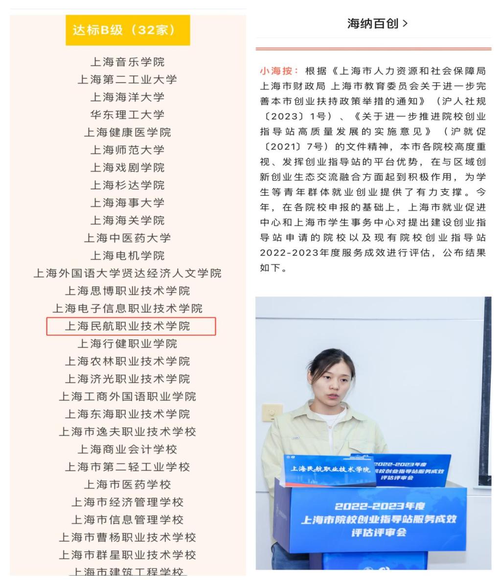 为积极推进本市创业政策、服务、资源与院校对接,夯实本市院校创新创业基础,进一步鼓励、引导和帮扶学生创新创业,日前,上海市就业促进中心、上海市学生事务中心公布的2022-2023年度已建站的院校共82家上海市院校创业指导站服务评估结果中,我院成绩再突破,获评“B级高校创业指导站”。
