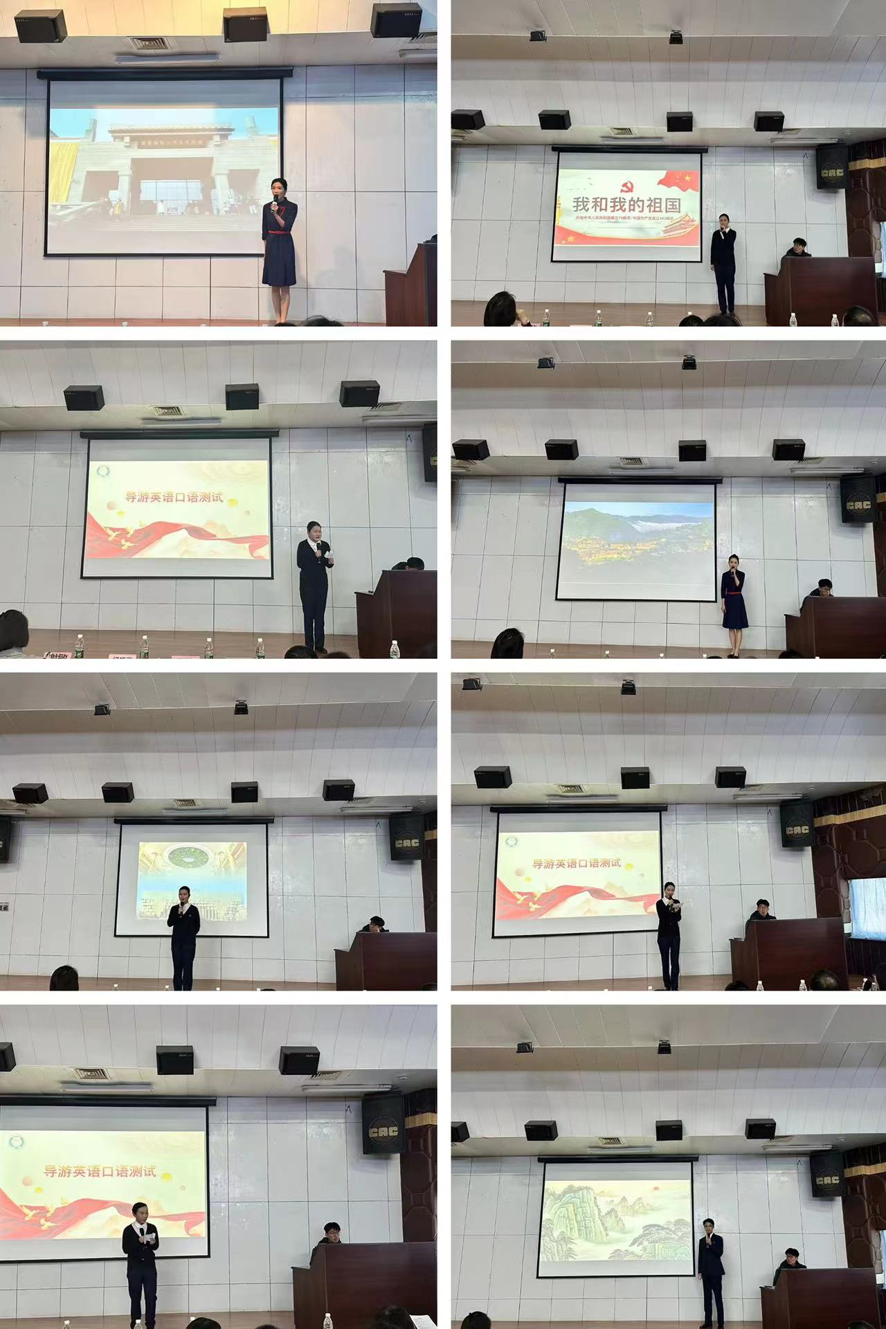 比赛过程中,八位参赛选手展示出了自己良好精神风貌和较高的专业素养。在自选景点讲解环节中,八位选手从五岳独尊—泰山、宁夏水洞沟遗址、西藏拉萨布达拉宫讲到山东省博物馆,从西江千户苗寨、秦始皇陵兵马俑、扬州大运河博物馆讲到贵州红色革命圣地—遵义,从秀美的大好河山、独特的民俗风情、灿烂的华夏文明讲到革命先烈们敢于奉献牺牲、勇于冲锋陷阵的大无畏精神……带领现场每一位师生体验了一场视觉盛宴和精神洗礼之旅。在导游英语环节,八位选手展示了良好的表达能力和卓越的个人风采。在才艺展示环节中,选手们集合导游带团活跃气氛的场景,通过甜美嘹亮的歌声,精彩曼妙的舞蹈将本次比赛推向了高潮。