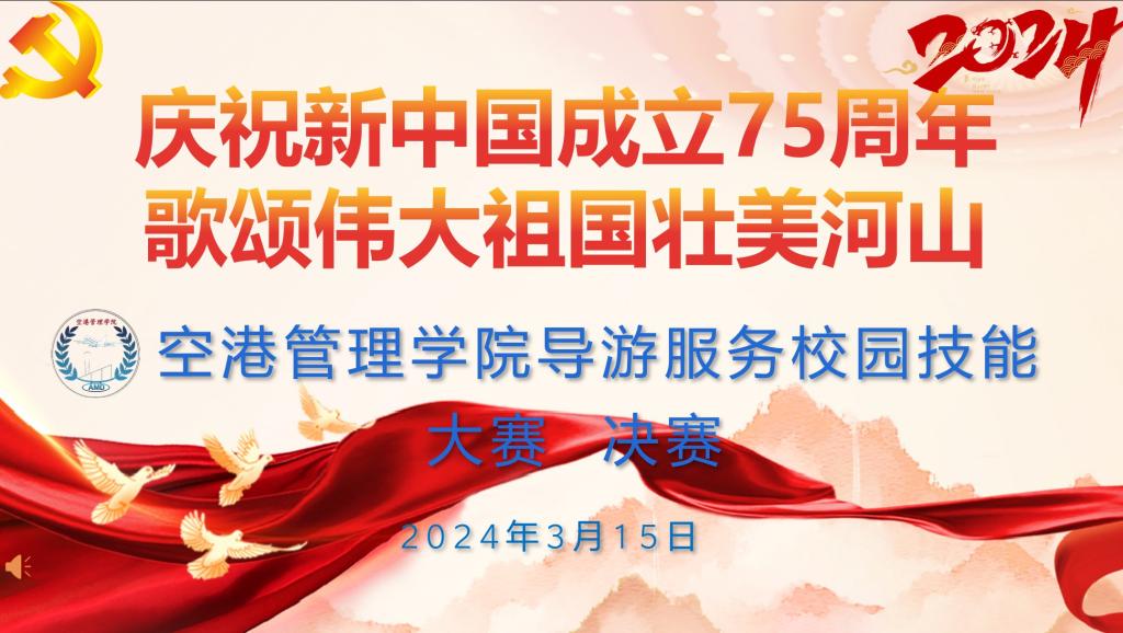 为庆祝中华人民共和国成立75周年,加强新时代青年大学生爱国主义教育,提升同学们的爱国爱党情怀,提高同学们的职业技能水平,紧密对接2024年上海高职学生技能大赛-导游服务赛项,并为2025年上海市“星光计划”职业院校技能大赛储备人才,展示我院学生的良好专业素养和卓越个人风采,彰显航空旅游服务专业人才培养的质量和水平,空港管理学院于3月15日月举办“庆祝新中国成立75周年,歌颂伟大祖国壮美河山”为主题的导游服务校园技能大赛。