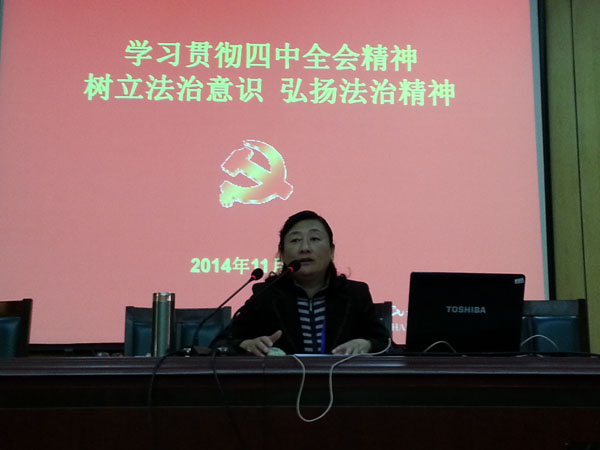 党委书记孙莹为学院第四期业余党校基础班学员做“学习十八届四中全会精神”专题辅导讲座