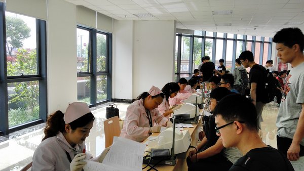 为弘扬人道、博爱、奉献的精神,5月23-24日,我校积极组织义务献血活动,1200多名学生踴跃报名,最终有646名学生成功进行了无偿献血,超额完成献血任务。此次献血工作在学生事务中心进行,副院长章恒龙到现场询问了献...