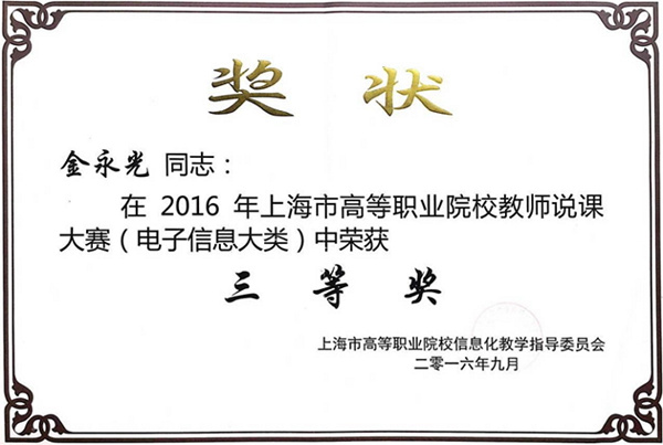 我校金永光老师在上海高等职业院校说课大赛中获奖