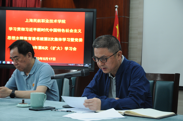 5月17日上午,学院党委举行学习贯彻习近平新时代中国特色社会主义思想主题教育读书班第二次集体学习暨党委中心组2023年第六次(扩大)学习,围绕在主题教育中开展干部队伍教育整顿作动员部署,提出工作安排,聚焦全面从严治党、推进党的自我革命、严格执行党规党纪提出具体要求。学院党委书记戴志刚主持学习会并讲话。在校的学院党委领导班子成员胡亚明、王立新、杨征、姚力军及处级中层干部共计28人参加集体学习。戴志刚....
