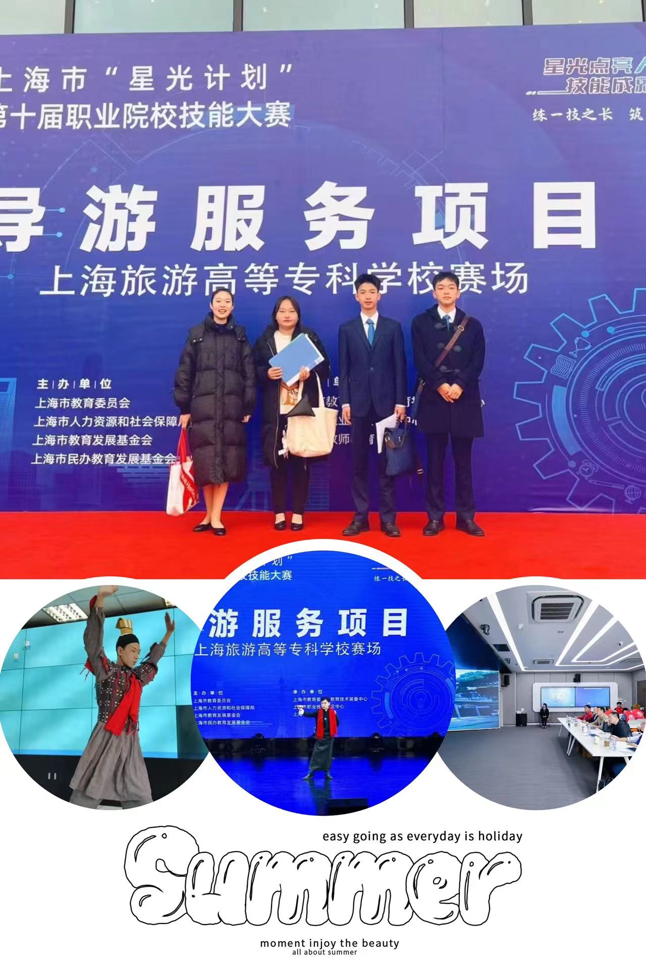 近日,2023年第十届上海“星光计划”职业院校技能大赛“导游服务”项目比赛结果出炉。在本届大赛中,空港管理学院选派民航运输(航空旅游服务)专业学生张洋、秦俊成、田昭熹等组成专业团队代表我院参赛。最终在实训教研室专任教师李燕研、基础部张挥、服务教研室谢敏、刘玲、解昉、李良杰、周松、康怡、金永光等老师的悉心指导下和赛务筹备组吴宗慧老师、教导员杨妍桃等的热心帮助下,分别荣获二等奖一名、三等奖两名、团体成....