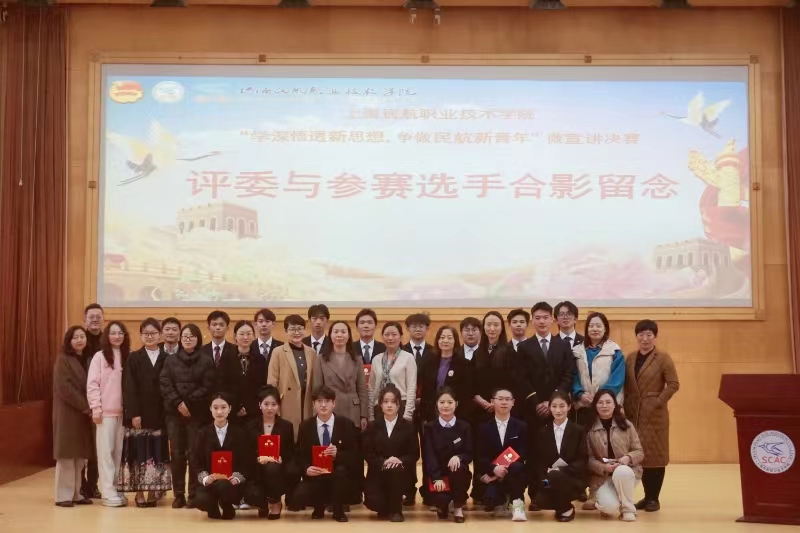 为将习近平新时代中国特色社会主义思想先学一步,学深一层,引导广大青年自发奋进新征程、建功新时代,3月22日下午,由马克思主义学院、团委主办的“学深悟透新思想,争做民航新青年”学生微宣讲决赛在浦东尚智堂隆重举办。活动特邀人事处处长曹维平、公共基础学院党总支书记张莹、马克思主义学院常务副院长柳心欢、纪委监察室副主任李君、学生工作处副处长兼团委书记韩玉锦、民航运输学院师生联合党支部副书记朱川慧担任评委,....